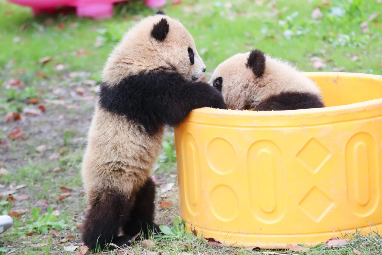Giant Panda Twins Qian Ran and QianYi Make Outdoor Debut